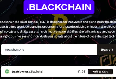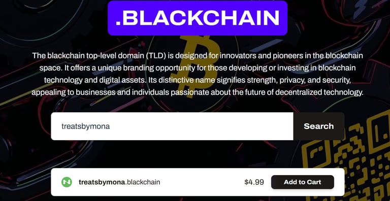 This will open a new window in your browser, where you can search for and register your new .blackchain name.